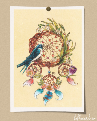 Весенний ловец снов 22 руб. В корзину Почтовая открытка Размер: 100x150 мм. Плотность картона: 325 г/м. + Матовая ламинация на лицевой стороне Иллюстратор: Анастасия Полехина Почтовая открытка Размер: 100x150 мм. Плотность картона: 325 г/м. + Матовая ламинация на лицевой стороне Иллюстратор: Анастасия Полехина