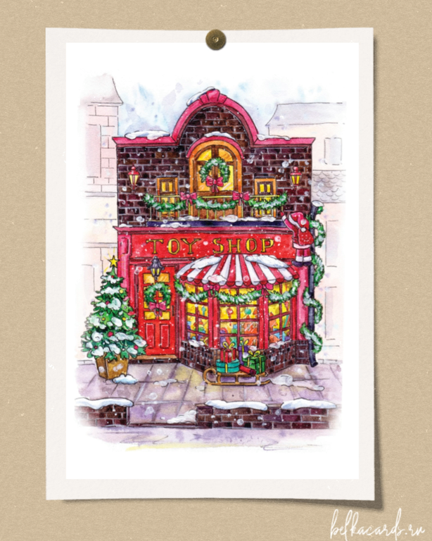 Городские зарисовки. Магазин игрушек 22 руб. В корзину Почтовая открытка Размер: 100x150 мм. Плотность картона: 325 г/м. + Матовая ламинация на лицевой стороне Иллюстратор: Полина Орехова Почтовая открытка Размер: 100x150 мм. Плотность картона: 325 г/м. + Матовая ламинация на лицевой стороне Иллюстратор: Полина Орехова